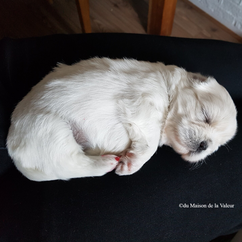 Een tijdje later kregen wij een berichtje van onze buurvrouw dat de fokker van hun hondje opnieuw een nestje met pupjes hadden. Wij zijn er gaan kijken en besloten zo een klein pupje te nemen (konden we alvast wennen zeiden we tegen elkaar). Aangezien het een nestje was met bijna alleen maar witte pupjes had de fokker de nageltjes een kleurtje gegeven. De roze nagellak kleur viel ons onmiddellijk op en dat werd dan ook onze Tante Till. We mochten begin juli 2019 Tante Till verwelkomen bij ons thuis.
