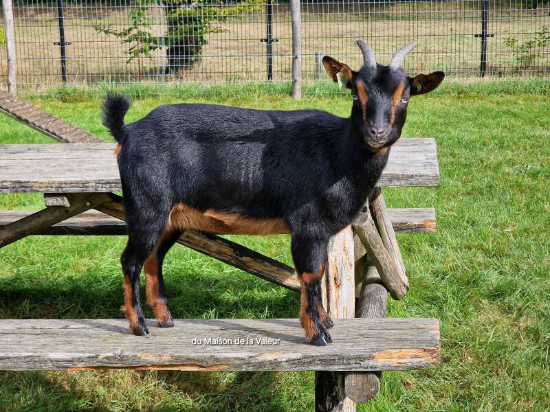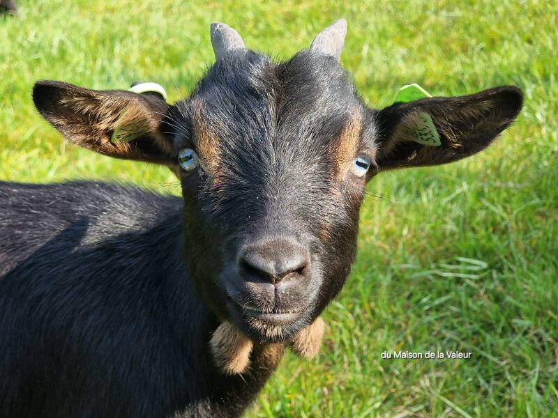 Nessa du Maison de la Valeur is een heel lief dwerggeitje met een zacht karakter. De eerste maanden week ze niet van haar moeders zijde. Ondanks dat ze af en toe best een knuffel komt halen, houdt zij er van om van een kleine afstand eerst eens gade te slaan.