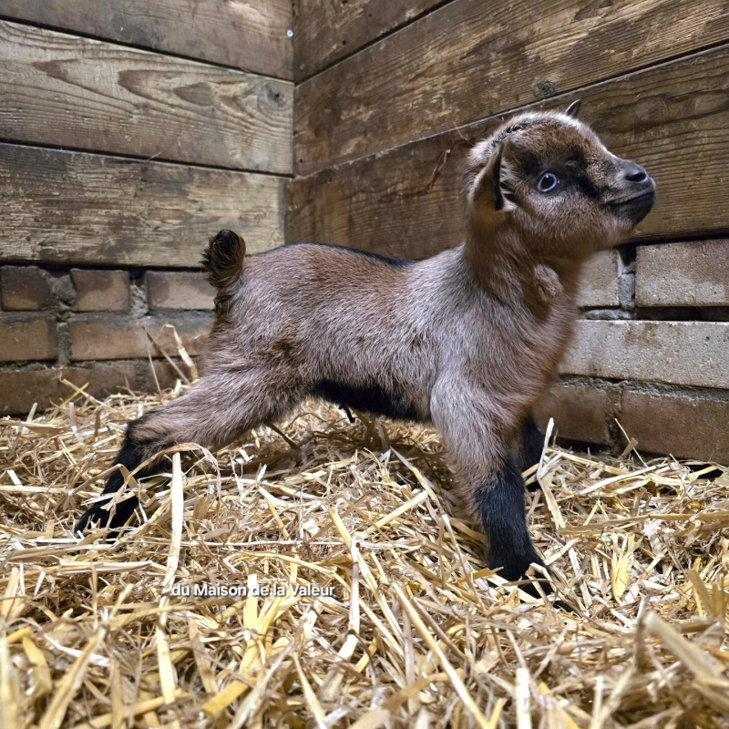 Ons eerste blijvertje dit jaar hebben we Felice du Maison de la Valeur genoemd. Ze is van postuur een klein geitje die in doen en laten precies haar moeder Filou du Maison de la Valeur is. Eigenwijs, aanhankelijk en superlief. Een echte hartendief! Met haar Black and Tan Hermelijn kleur vacht is zij de eerste van de dames in de kudde. Daarmee valt zij dus leuk op! Met haar prachtige blauwe ogen is zij een helemaal uniek meisje! Deze combinatie is precies waar wij van houden♥! Kortom bij de eerste seconden van haar leven wisten wij direct dat zij een blijver zou zijn!