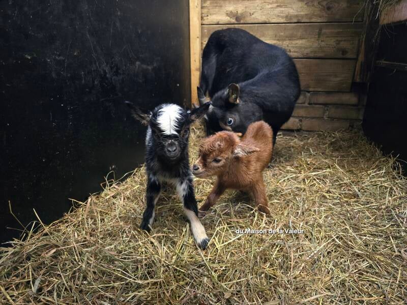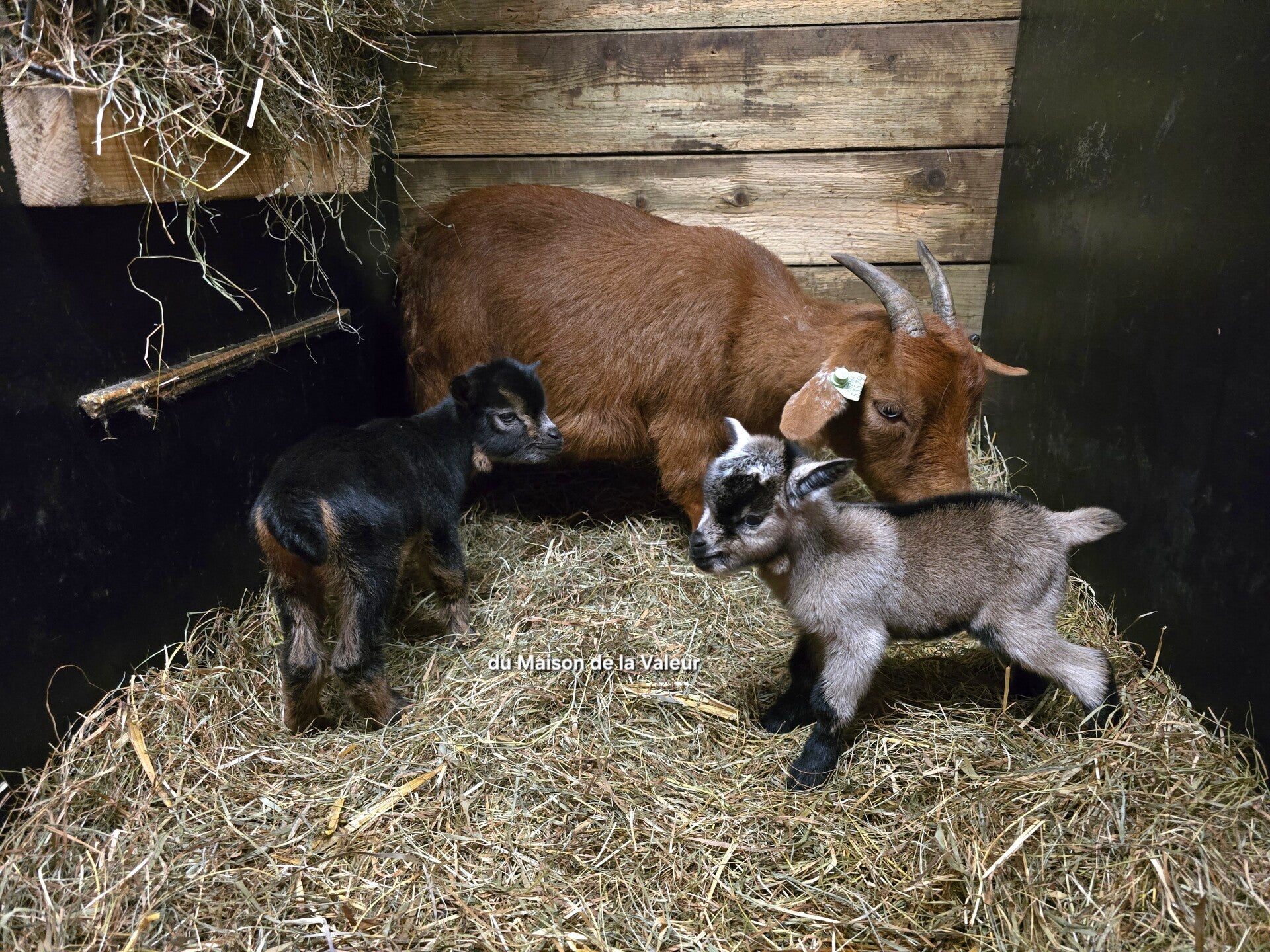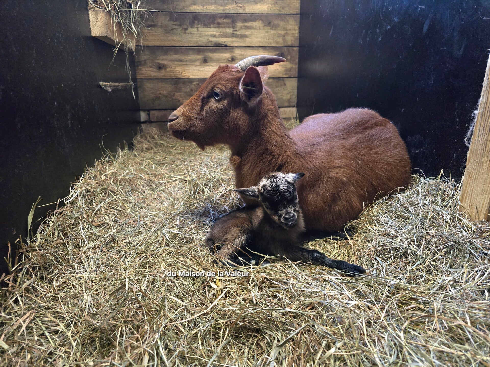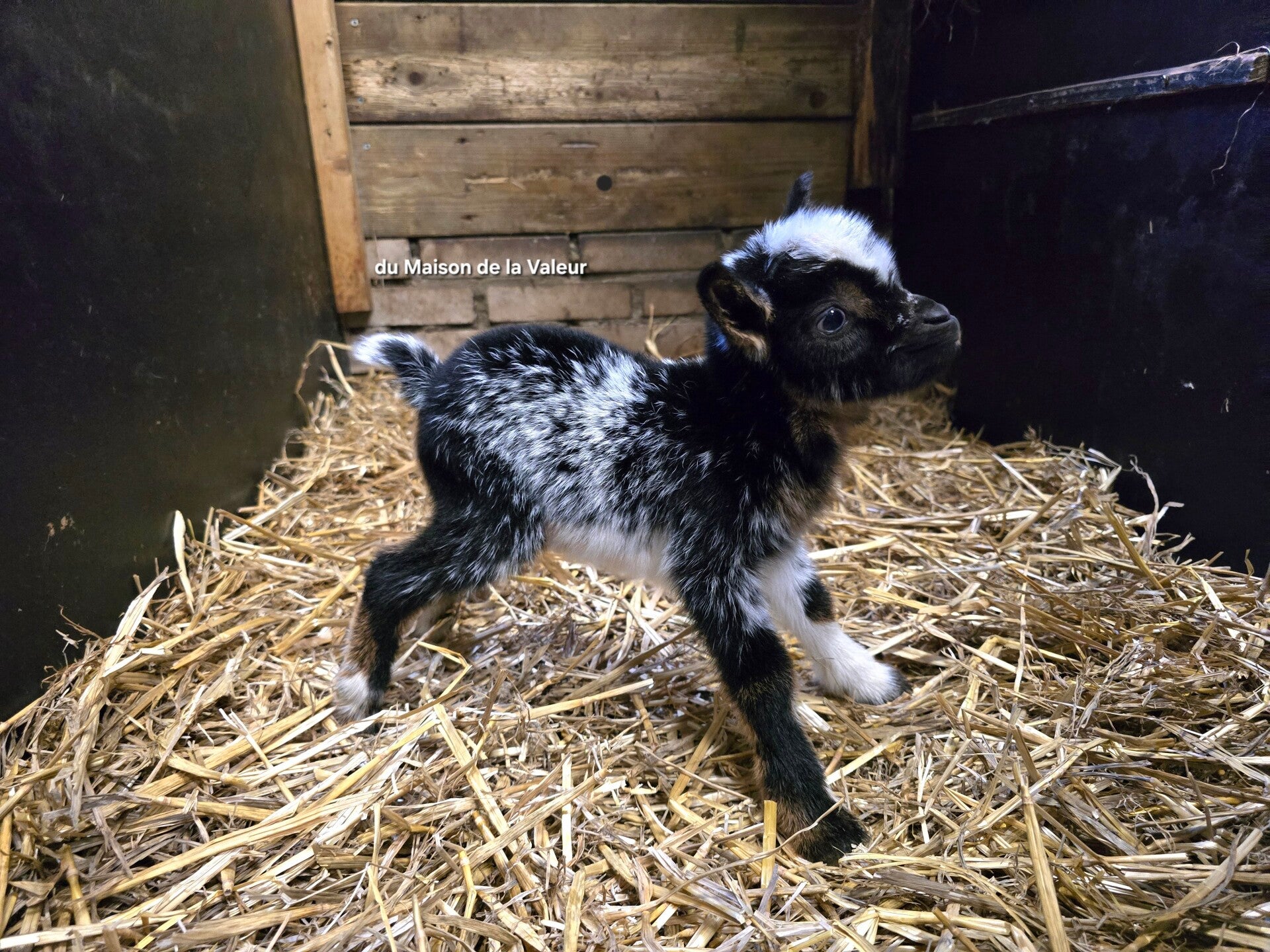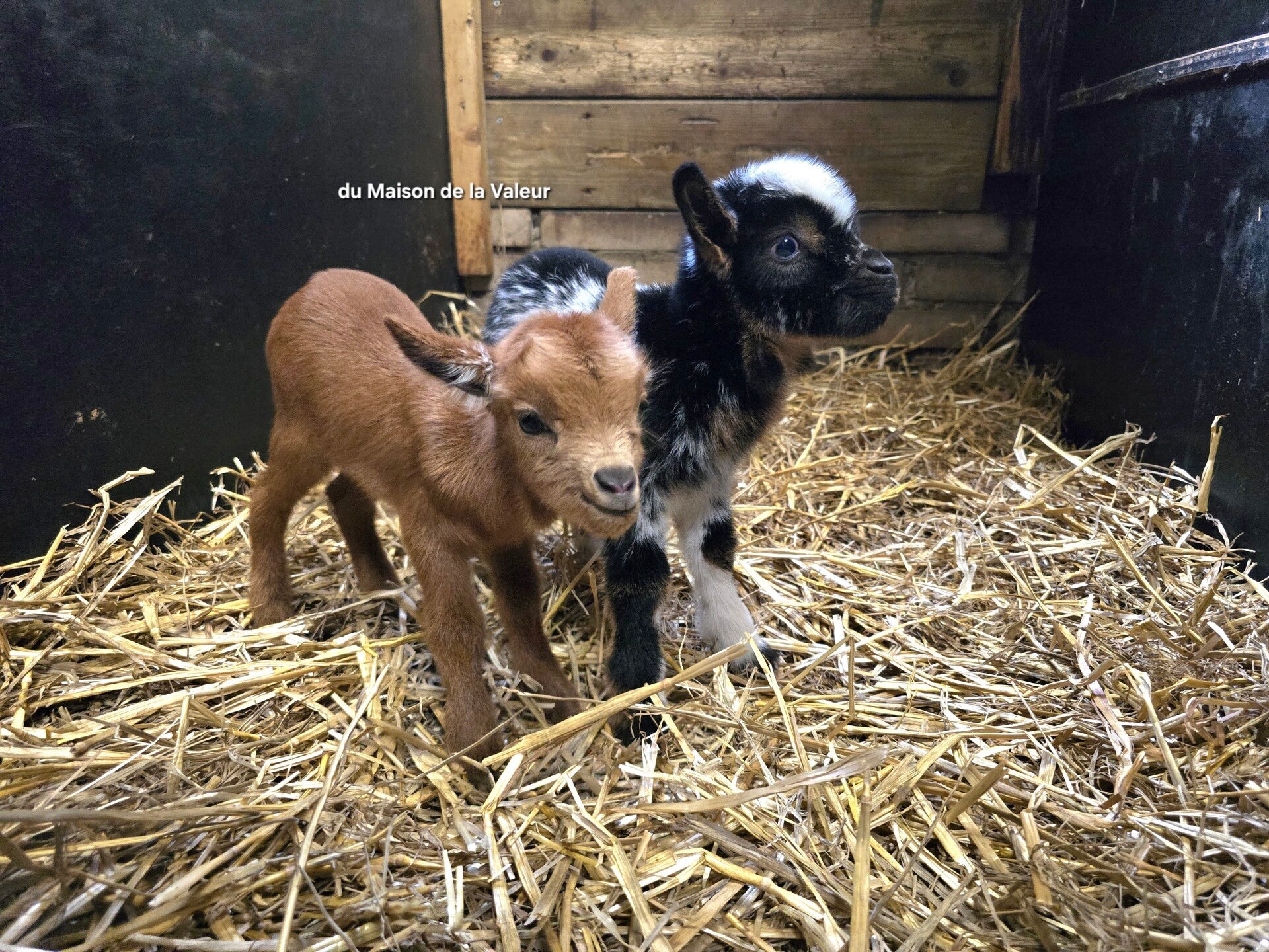 Mijn lieve knappe Nessa du Maison de la Valeur gaf de aftrap van het lammerseizoen van 2026. Op 28 februari, haar uitrekendatum, beviel ze van een tweeling. Direct wist ze haar moederrol als 'first time mom' goed te vervullen. De eerst geborene is een mieke. Zij is Black and Tan van kleur, heeft meeloortjes en snuitje, Lelletjes en een Witte kol. Haar broertje, die vlot na haar kwam, is Abrikoos van kleur met Meeloortjes, Lelletjes en Blauwe ogen. Zyon tekent hier voor het vaderschap. Ik ben ongelooflijk trots op Nessa! Ook onwijs blij met deze eerste lammetjes in mijn dwerggeitenstal.