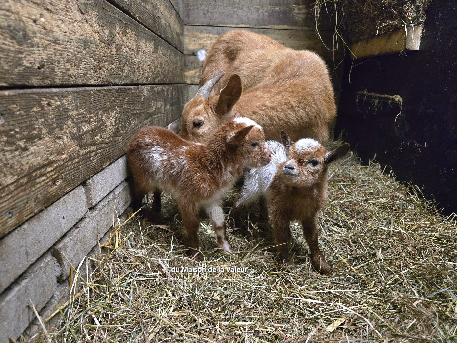 Vol trots toon ik de dwergbokken die dit jaar zijn ingezet. Het zijn voor u bekende dwergbokken. Zij hebben alle drie al eerdere seizoenen mogen dekken in onze dwerggeitenstal. Ik ben erg blij met deze bokken, zowel met hun kleur, bouw en karakter. De kleine maar stoere Hermes du Maison de la Valeur mag een seizoen wachten, hij is nog klein van formaat en van karakter ook nog echt een kleine knuffel schat.