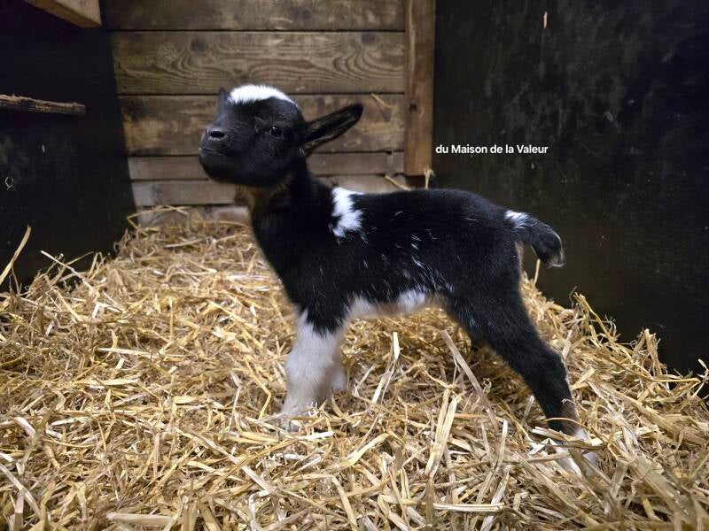 Ze kreeg een enig bokje. Ze blijkt direct een heel goede moeder voor hem te zijn en ze kan hem alle aandacht geven. Het bokje is Black and Tan Bont Hermelijn van kleur, heeft Lelletjes en een Witte Kol. Liam mag als vader trots zijn op de ferme bokje!